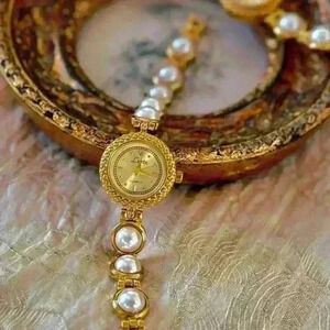 Water-Resistant 30m Quartz Watch, With Pearl Strap, Bohemian Vintage Court Style Circular Quartz Wristwatch For Women, Suitable For Everyday Wear, Parties, And Other Occasions.