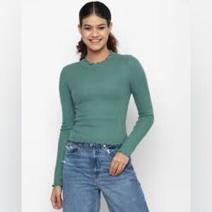 American Eagle Outfitters Teal Ribbed Knit Top