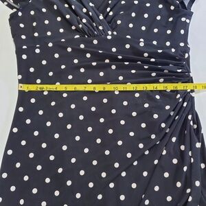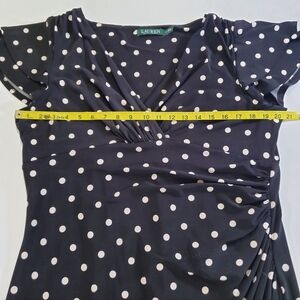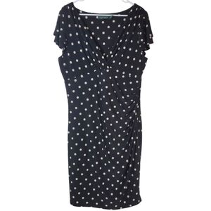 🟢7570 * Lauren Ralph Lauren Polka Dot Surplice Midi Dress Black White Size 18