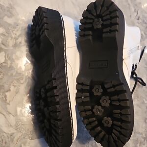 Brand new, never worn, Sincerely Jules white combat boots with side zipper entry. Black grip soles and stitching marry function and style in this fun boot.