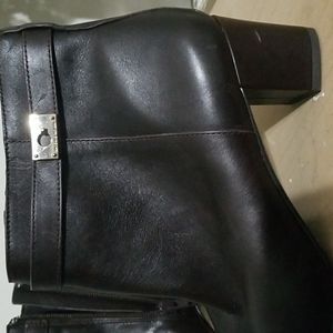 Dark leather boots side zip buckle accent NWOT