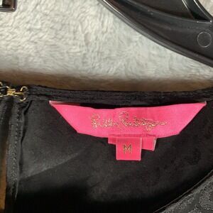 Lilly Pulitzer Women's Top Black Animal Print 3/4 Bell Sleeve Crew Neck M