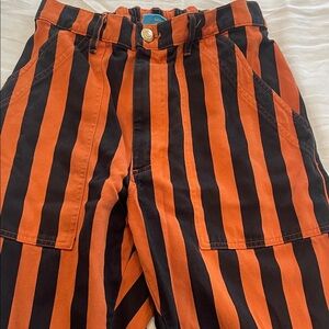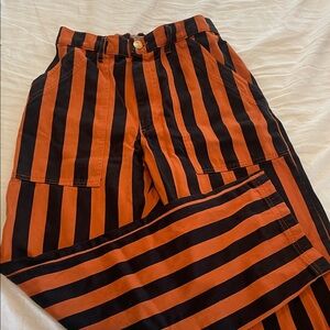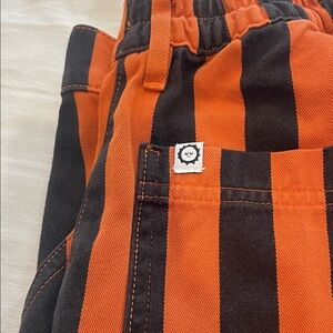 Bold orange and black stripes. Flare cut with elastic back waistband and large pockets. Comfortable fit. Limited edition big bud press!