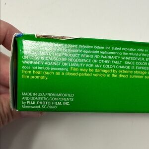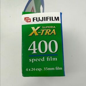 Fujifilm 400 speed film. Perfect for various lighting conditions. Includes four rolls, each with 24 exposures.