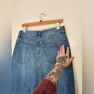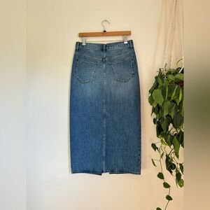 Madewell medium wash denim skirt- brand new with tags, beautiful midi skirt. Stiff denim, with a zipper fly & front slit.