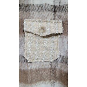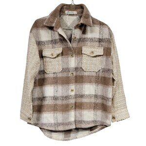 Southern Grace Plaid Shacket Jacket Brown Beige Tweed Pockets Button Down