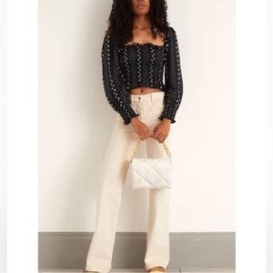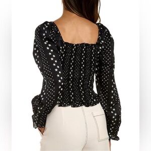 LOVESHACKFANCY Russell stars smocked top puff sleeve black white small