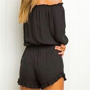 BRANDY MELVILLE One Size Fits All OFF SHOULDER Ruffle Drawstring Romper Black