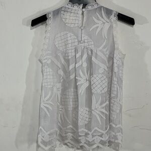 MAEVE by Anthropologie Lace Sleeveless Blouse Shirt Top Pineapple Design White