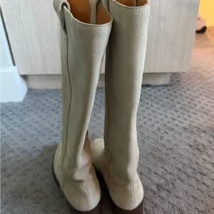 Chic knee high suede boots by Sezane. Soft cream color. Perfect for versatile styling.