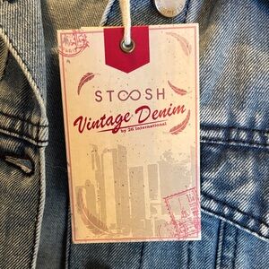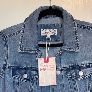 Chic denim jacket by Stoosh. Features a classic collar and button front.