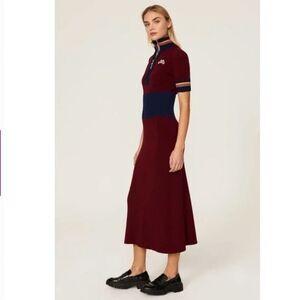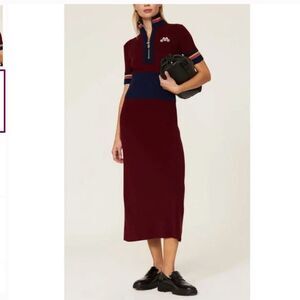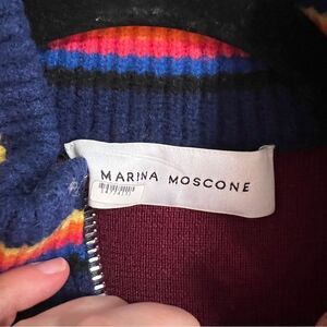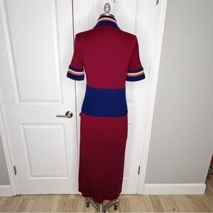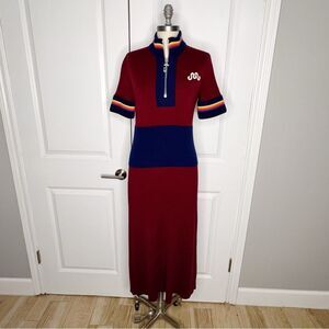 $1250 Marina Moscone Cycling Wool Dress Turtleneck Sweater M Red Burgundy Blue