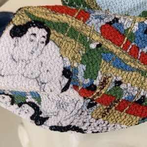 Vintage stretchy silk sumo wrestler stretch scarf kerchief large blue red cream