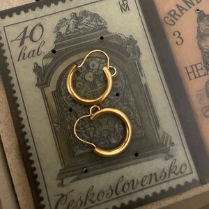Very interesting and uncommon hoop earrings - ear wires are made in 14k solid gold and tubes are 1/20 12kt gold filled. These are most likely made in the 1950s - 1960s. They are brand new, never used, still attached to original retail cards. Not sure if they are hallmarked individually. With how crazy gold price has gone up, these are perfect if you want the chunkier look at affordable prices and still be able to wear 14k solid gold in your ears.