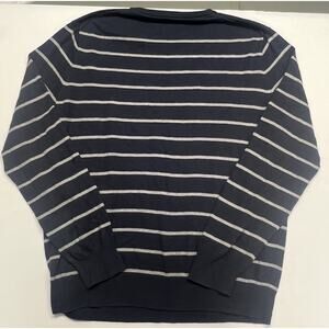 This listing is for a lot of two J.Crew men's harbor cotton sweaters in size XL. The sweaters feature a classic navy and gray striped pattern, long sleeves, and a crew neck neckline. Made from a blend of nylon, cotton, and wool, they are machine washable and have a regular fit. Ideal for various occasions like travel, parties, casual outings, or business meetings, these pullover sweaters are perfect for the winter, fall, or spring seasons. The stylish and timeless design of these sweaters make them a versatile addition to any man's wardrobe.