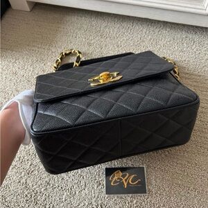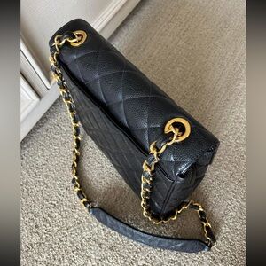 Chanel Black XL Timeless Caviar Square Shoulder Bag with Gold Chain