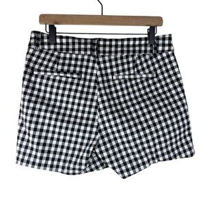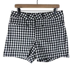 By Anthropologie Black White Picnic Gingham Shorts. High rise. Pockets. Stretch. Cotton, polyester, elastane blend. Retail: $80. Size 30. Waist: 15.5" across. Rise: 11". Inseam: 4.5". (691)