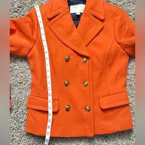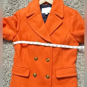 Banana Republic Orange Double Breasted Pea Coat with Navy Blue Lining, Gold hardware, Ruffle Hem in back, Size 4
