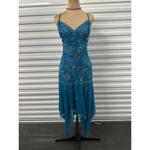 Vintage Long Rabbit Fur Trimmed Coat with Blue Accents - Size small to medium