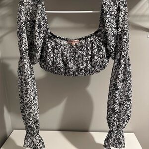 Elegant Black and White Floral Crop Top