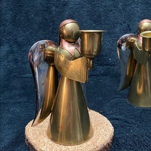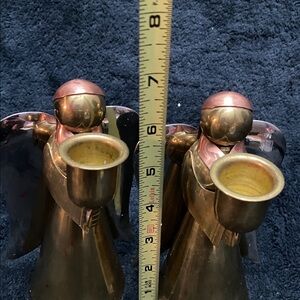 Vintage Brass and Copper Angel Candlestick Holders - Set of 2