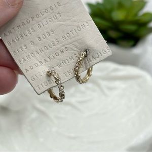 Anthropologie Gold Rhinestone Small Dainty Huggie Hoop Earrings