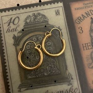 NEW OS 1960s 14kt solid yellow gold wires pierced hoop earrings VTG Mid Century