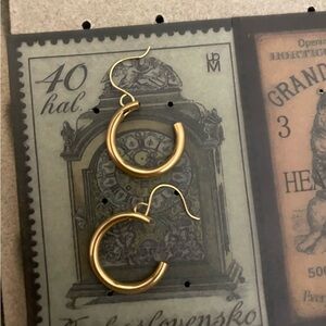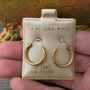 Very interesting and uncommon hoop earrings - ear wires are made in 14k solid gold and tubes are 1/20 12kt gold filled. These are most likely made in the 1950s - 1960s. They are brand new, never used, still attached to original retail cards. Not sure if they are hallmarked individually. With how crazy gold price has gone up, these are perfect if you want the chunkier look at affordable prices and still be able to wear 14k solid gold in your ears.