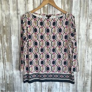 Ann Taylor Geometric Printed Long Sleeve Blouse