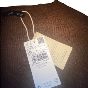 MANGO chocolate brown knit Henley long sleeve knee Lenght dress size XS