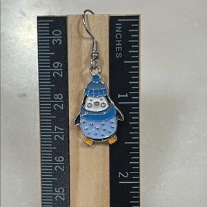 Adorable penguin earrings featuring blue and silver colors. Perfect for adding a playful touch to any outfit.