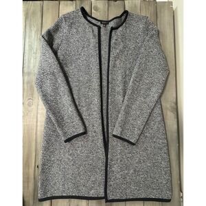 Talbots Womens Marled Gray Black Knit Cardigan Open Front Long Sleeve Jacket Med