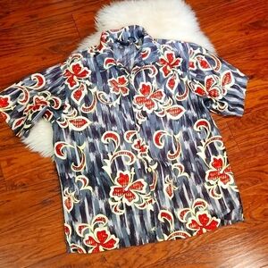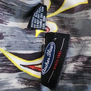 Y2K Vintage Anchor Blue Button Front Mens Collared Hawaiin Shirt