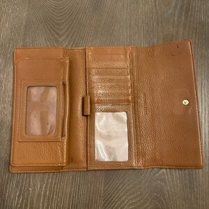 Vintage Michael Kors MK Tan Full Size Soft Leather Wallet w/ Checkbook Holder. Has some normal wear, around corners, couple ink spots. See photos for condition.