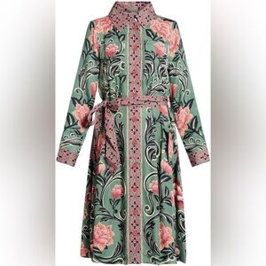 Farm Rio Arabesque Floral Green Midi Dress XS NWOT
