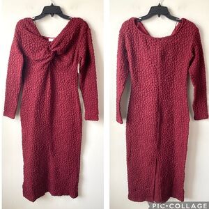 ASTR The Label Textured Twist Front Midi Dress Wine Red Burgundy M