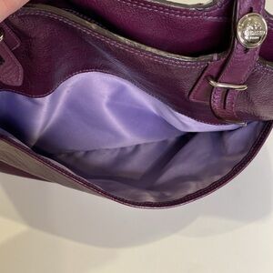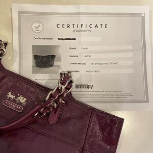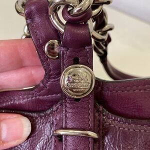 Authenticated Coach Tribeca Double Strap Chain Patent Leather Tote shoulder Bag Berry and Silver. F0993-14123