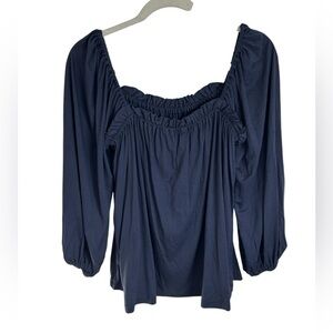 Boden Navy Blue Square Neck Swing Jersey Blouse Top Peasant Womens Sz 6 NWT