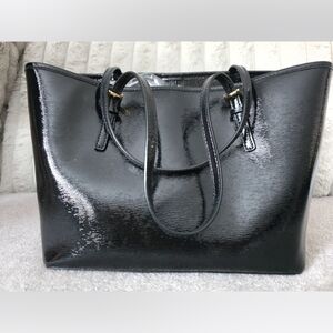 Classic Michael Kors black patent leather tote with gold-tone hardware and MK hangtag. Clean interior with zip and slip pockets. Structured, roomy, and perfect for everyday or work use. Comes with original Michael Kors dust bag. Gently used, very good condition.