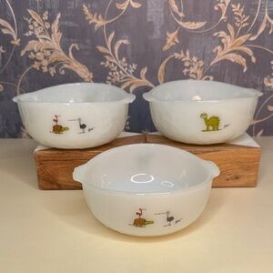 Vintage Anchor Hocking Fire King Bowls BC Comics Johnny Hart Dinosaur Set Of 3