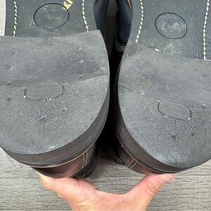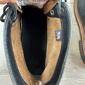 Thorogood 1892 Beloit Black Leather Boots Men’s Size 13 Work Boot. Nitrile Cork outsole. Lace Up. Good condition with scuff on toe of one boot shown in photo. Made in USA.