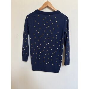 J.Crew Navy Gold Embroidered Star Merino Wool Crew Neck Sweater XS Celestial