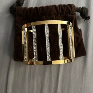 Chic cuff with gold frame and crystal stripes. Comes with jewelry bag. No missing crystals - No scratch marks