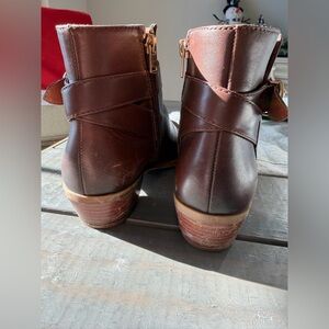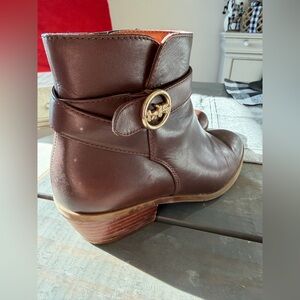 Coach Brown Leather Ankle Booties with Gold Buckle
