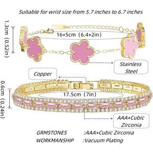2Pcs Stackable Bracelet Set for Women Cubic Zirconia Tennis Bracelet Adjustable