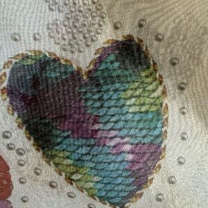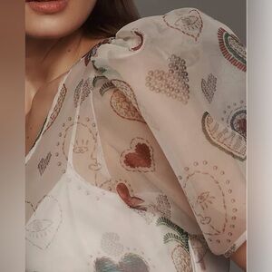 XL Farm Rio x Anthropologie-Sheer puff sleeve cream+red heart dress.Size XL
