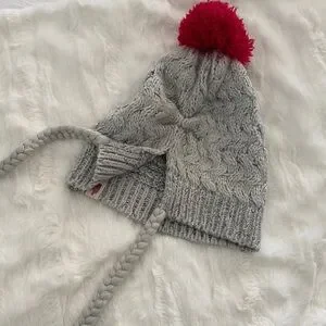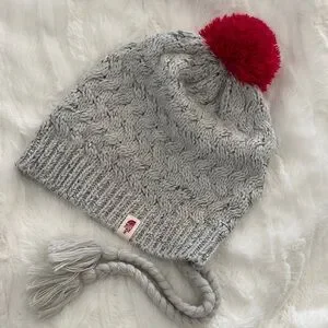 The North Face Cozy light gray knit beanie with a fun deep pink pom-pom. Features braided tassels for extra style points. Has TNF tag and it’s super cute, this was worn twice. Like NEW. No signs of wear. Women’s Y2K o/s fits!