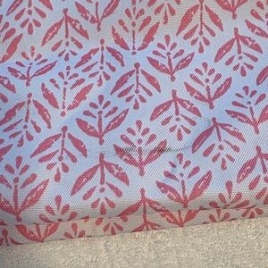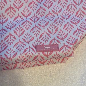 Chic pink and white tote by Scout. Features sturdy black handles and carrying strap. Ideal for daily use.