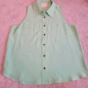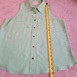 excellent condition beautiful mint green sleeveless Blouse pleated detail on chest size M