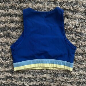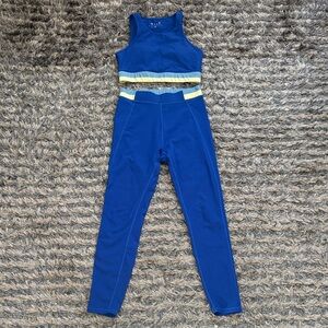 Stay stylish and comfortable with this blue and yellow women's activewear set. Perfect for workouts, yoga or casual wear.